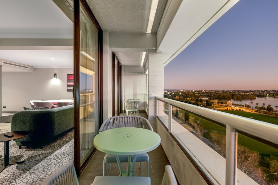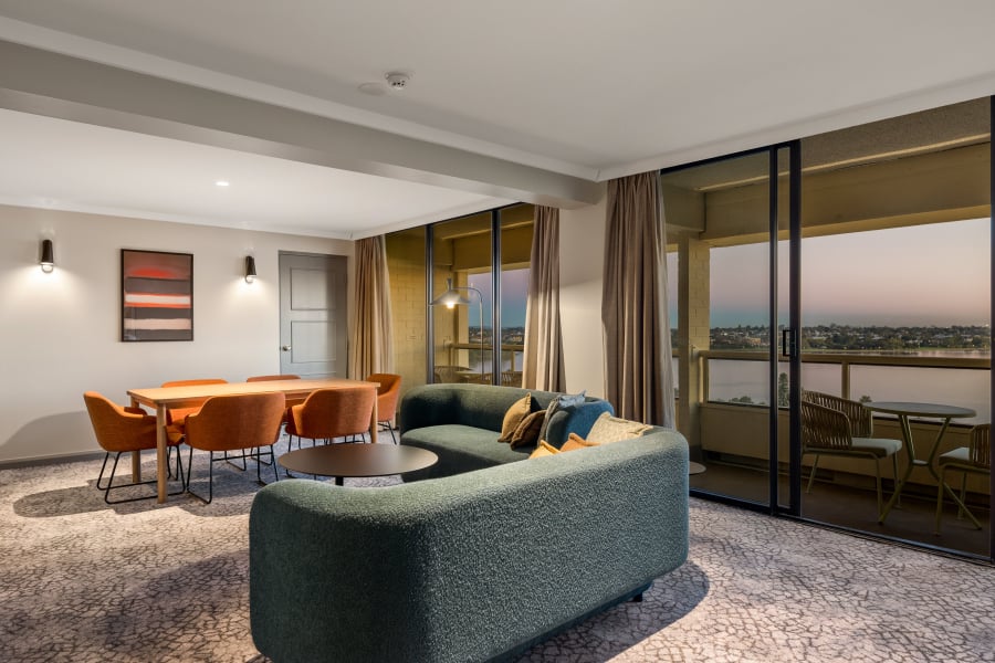 Spend a relaxing night in Crowne Plaza Perth's amazing King Suite, located on the top floor with an extended balcony overlooking Langley Park and Swan River; sunsets never looked better. Unwind in your en-suite featuring large freestanding bath and separate shower, and cosy up in the spacious living area.